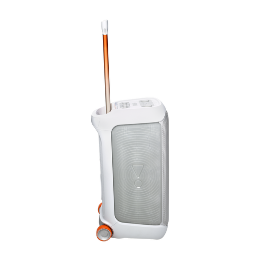 قابلیت حمل آسان: با دستگیره تلسکوپی و چرخهای محکم، اسپیکر را بهسادگی جابهجا کنید.